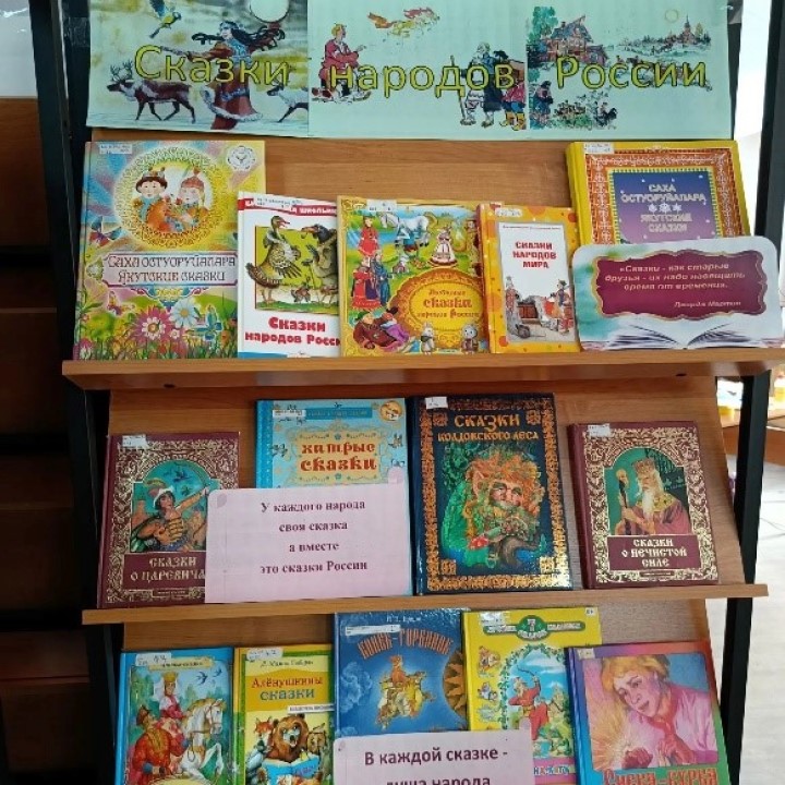 В читальном зале оформлена выставка – обзор открытого просмотра «Сказки народов России», которая познакомила читателей со сказками разных народов, проживающих в многонациональной стране.